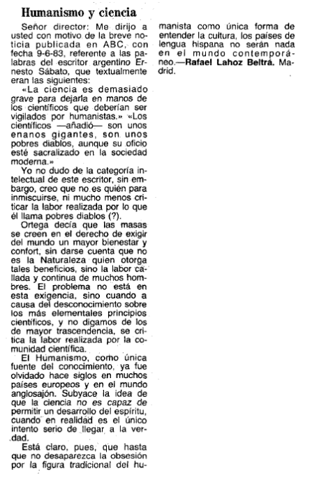 Imagen (superior). Cartas al Director. Opinión. ABC 14.06.1983, págs. 16-